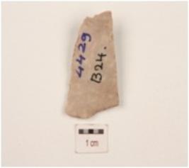 | Description / विवरण | Chert utilized flake double ridge on dorsal surface, use-wear marks on all working edges and trapezoidal in section. |