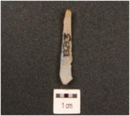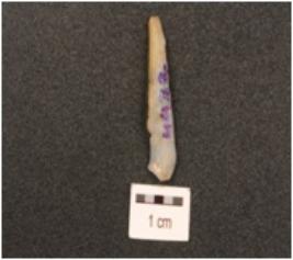 | Description / विवरण | Parallel sided blade, prominent bulb with striking platform, use-wear marks on both working edge and mid ridge on dorsal surface. |