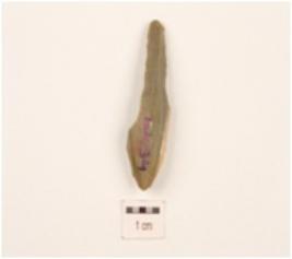 | Description / विवरण | Chert flake, blade scars on surface and use-wear marks on edges. |
