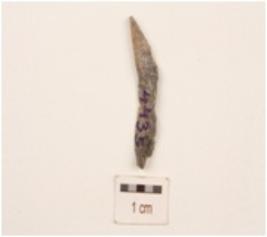 | Description / विवरण | Chert blade, striking platform visible, bulb absent and use-wear marks on both working edges. |