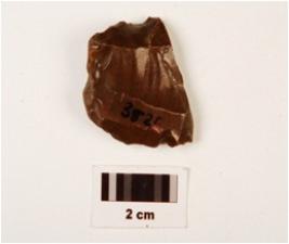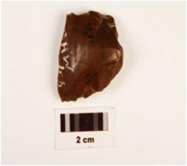 | Description / विवरण | Flake made on chert, blade scars on the dorsal side, bulb of percussion on the proximal end irregular cutting edges. |