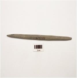 | Description / विवरण | A himalayan soft stone point with both ends pointed, one end slightly broken, smooth surface and long narrow. |
