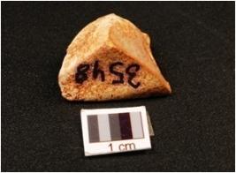 | Description / विवरण | A chert flake with flake scars on dorsal prepared platform and bulb on ventral, triangular in section. |