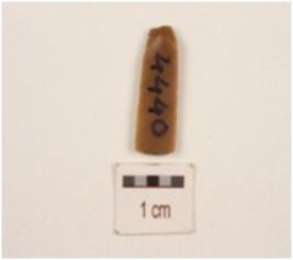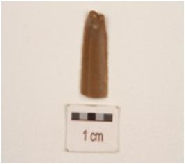 | Description / विवरण | Parallel sided chert blade, distal end broken, prominent bulb with striking platform, double ridge on dorsal and use-wear marks on both working edges. |