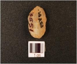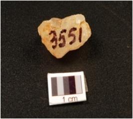 | Description / विवरण | A quartz flake with flake scars on dorsal and use wear marks on edge. |