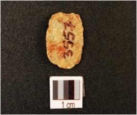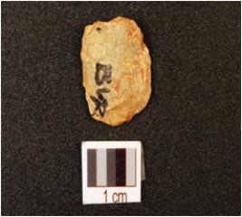 | Description / विवरण | A chert flake with smooth surface and flake scars on dorsal, use wear marks on cutting edge. |