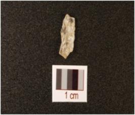 | Description / विवरण | A rock crystal blade with prominent single ridge on dorsal triangular in section and use wear marks on working edge and translucent. |