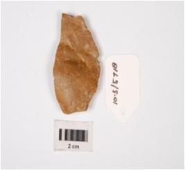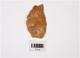 | Description / विवरण | Flake stone, made by chert. Blade scars on the surface. Diffuse bulb on ventral side. |