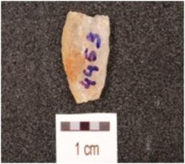 | Description / विवरण | An utilized flake made on quartz, blade scars on dorsal side and use-wear marks along sharp edges. |