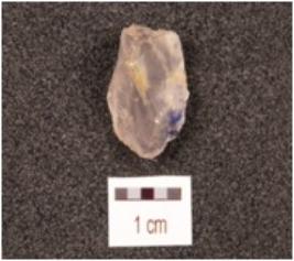 | Description / विवरण | A core on quartz crystal with eight blade scars on surface. |