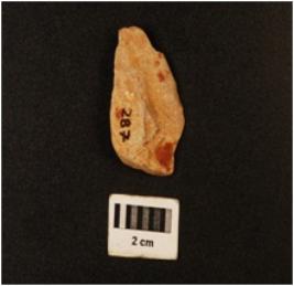 | Description / विवरण | End struck side scraper, three flake scars visible on one side of surface and positive bulb found near the striking platform. |