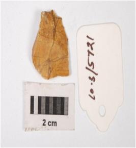 | Description / विवरण | Flake made on chert, two blade scars, prepared platform Irregular, cutting edges, bulb on the ventral surface. |