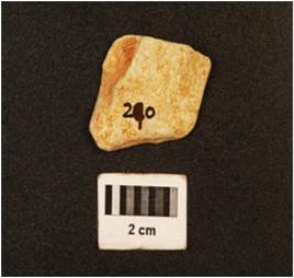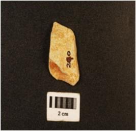 | Description / विवरण | Broken blade with two working edge, blade scars visible on surface and striking platform on one end. |