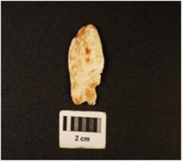 | Description / विवरण | End struck side scraper with a positive bulb on one end. Flake scars visible on surface. |