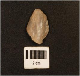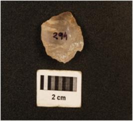| Description / विवरण | Flake with a diffused striking platform and flake scars on surface. |