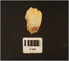 | Description / विवरण | Side struck, end scraper with one working edge, positive bulb slight chippings found near the striking platform. |