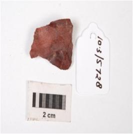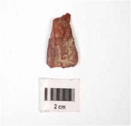 | Description / विवरण | Flake made on chert, three blade scars, prepared plateform proximely, irregular, retouch cutting edges. |