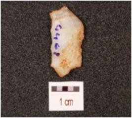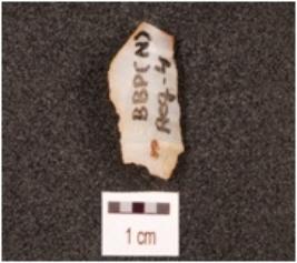 | Description / विवरण | An utilized flake made on an end sturck quartz flake, unprepared platform, diffused bulb on ventral side and use-wear marks along sharp edges. |