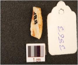 | Description / विवरण | A chert balde with cortex and single ridge on dorsal, use wear marks on cutting edge and triangular in section. |