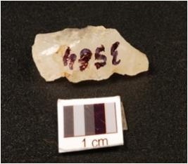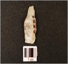 | Description / विवरण | A quartz blade with prominent single ridge on dorsal, use wear marks on cutting edge and triangular in section, diffused bulb on ventral. |
