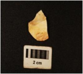 | Description / विवरण | Broken flake with a positive bulb on one side, middle ridge on other side and striking platform. |