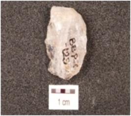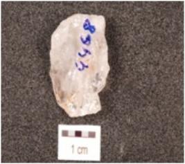 | Description / विवरण | Fragment of a side struck quartzite crystal flake, prepared platform and diffused bulb on ventral side. |