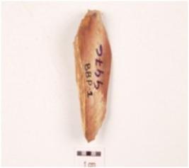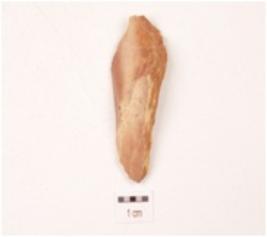 | Description / विवरण | An end struck utilized flake on chert, prepared platform, diffused bulb on ventral side, three blade scars on dorsal side, cortex partly present on dorsal side and use-wear marks along the sharp edge. |