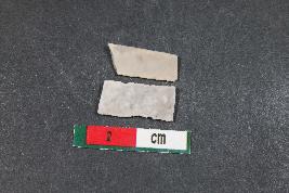 | Description / विवरण | Fragments of a blades with two dorsal ridges having smooth surface. Shorter fragment has length equivalent to 1.3 cm |