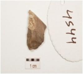 | Description / विवरण | A blade made on chert, mid ridge on dorsal side, slightly cortex on dorsal side, broken on distal end, diffused bulb on ventral side and use wear marks along cutting edge. |