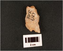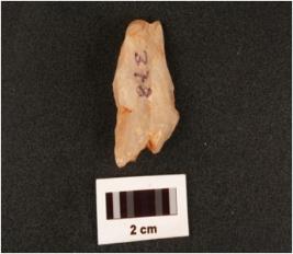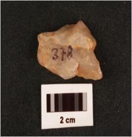| Description / विवरण | Quartz flake with flake scars on surface. |