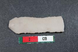 | Description / विवरण | Fragment of a blade with two dorsal ridges having smooth surface. |
