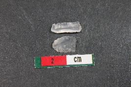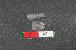 | Description / विवरण | Fragment of a blade with two dorsal ridges having smooth surface. Shorter fragment along with one dorsal ridge and a bulb of percussion has Length equivalent to 0.8 cm |