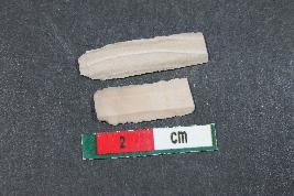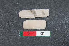 | Description / विवरण | Fragments of blades with two dorsal ridges having smooth surface. Shorter fragment has length equivalent to 1.6 cm |