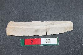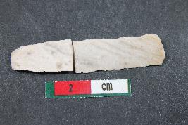| Description / विवरण | Fragment of Blades with two dorsal ridges having smooth surface. Shorter fragment along with bulb of percussion has length equivalent 1.5 cm. |