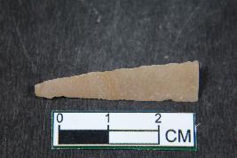 | Description / विवरण | A fragment of a blade having two dorsal ridges. It has smooth surface. |