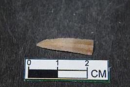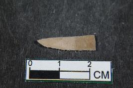 | Description / विवरण | A fragment of a blade having two dorsal ridges. It has smooth surface. |