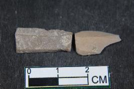 | Description / विवरण | Fragments of blades having two dorsal ridges and bulb of percussion in larger one . They have smooth surface. |