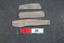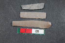 | Description / विवरण | Fragment of Blades with two dorsal ridges having smooth surface. Bigger fragment with bulb of percussion has Length equivalent to 3.1 cm. |