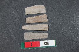 | Description / विवरण | Fragment of Blades with two dorsal ridges having smooth surface. Smaller fragment with one dorsal ridge has Length equivalent to 1.4 cm. |