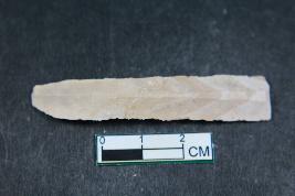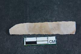 | Description / विवरण | A blade having two dorsal ridges, bulb of percussion on ventral side and smooth surface. |