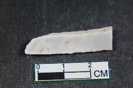 | Description / विवरण | A blade having two dorsal ridges, bulb of percussion on ventral side and smooth surface. |