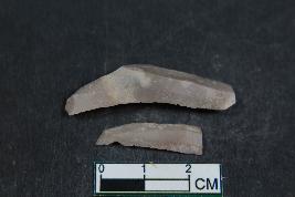 | Description / विवरण | Fragments of blade having two dorsal ridges, bulb of percussion on ventral side and smooth surface. |