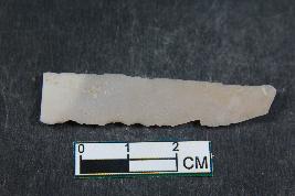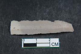 | Description / विवरण | Fragment of a slightly cruved blade with one dorsal ridge having smooth surface. |