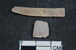 | Description / विवरण | Fragment of slightly cruved blades with three dorsal ridges having smooth surface. |