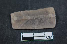 | Description / विवरण | Fragment of a blade with two dorsal ridges having smooth surface. |