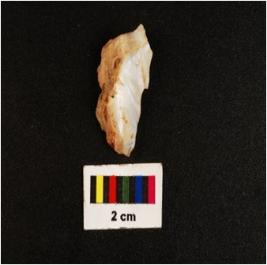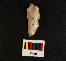 | Description / विवरण | Side scraper with use wear marks on working edge. |