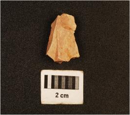 | Description / विवरण | Core with a one end broken, three blade scars on surface and positive bulb. |