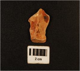 | Description / विवरण | A chert side hollow scraper with a working edge, six flake on one side, six flake scars on surface, positive bulb and striking platform. |