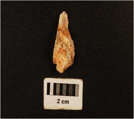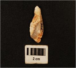 | Description / विवरण | A chert side scraper with a convex working edge, striking platform and positive bulb. |
