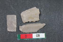 | Description / विवरण | Fragment of a Blades with two dorsal ridges having smooth surface. Shorter Blade has three dorsal ridges along with bulb of percussion on the ventral side. Length - 2.1, Width - 0.7 cm |